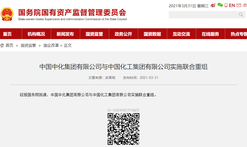 中化集團與中國化工獲準實施聯(lián)合重組